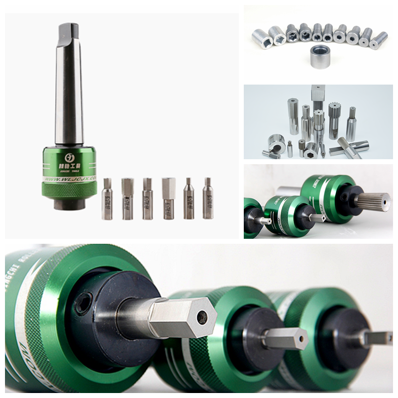 旋轉(zhuǎn)沖削工具是通過刀具的旋轉(zhuǎn)轉(zhuǎn)化為切削的力而進(jìn)行工作。本公司研制的旋轉(zhuǎn)沖削刀具,是一個(gè)操作簡單的異形孔加工刀具,本工具適用一般車床、CNC自動車床、加工中心、鉆床等設(shè)備,可加工盲孔,通孔有規(guī)則或不規(guī)則的多邊形,除了加工標(biāo)準(zhǔn)的六角、正方孔,也可定制星形、花鍵等其它特殊形狀。